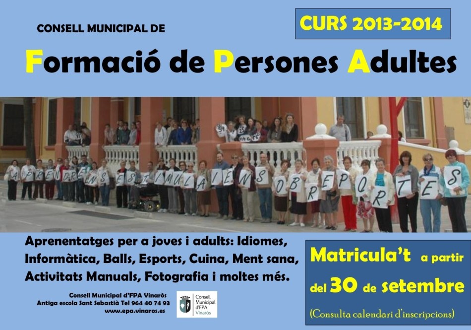 Toda la información puede encontrarse en la web www.epa.vinaros.es o dirigiéndose al antiguo colegio San Sebastián en horario de mañana y los jueves por la tarde.