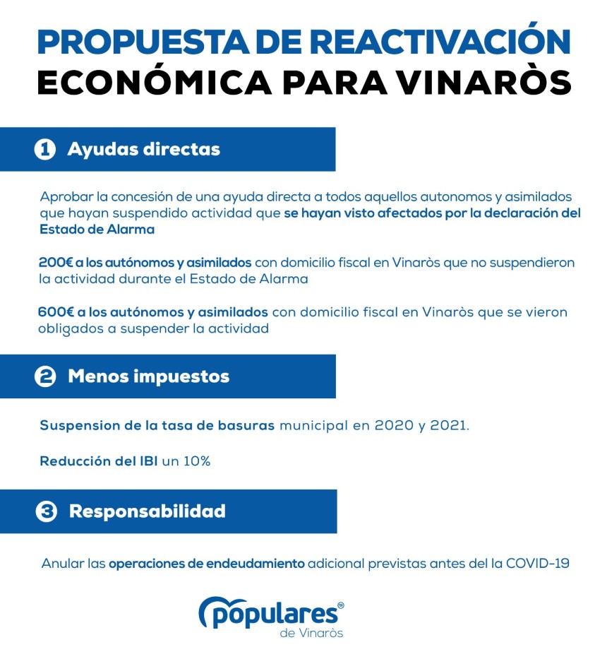 Suprimir la tasa municipal de basuras en 2020 y 2021 ayudará a compensar el tasazo del 13% aprobado por los alcaldes socialistas en la tasa de reciclaje. Cuando los vinarocenses peor lo están pasando lo único que no debe incrementarse son los impuestos, y esa es la fórmula preferida por la izquierda.