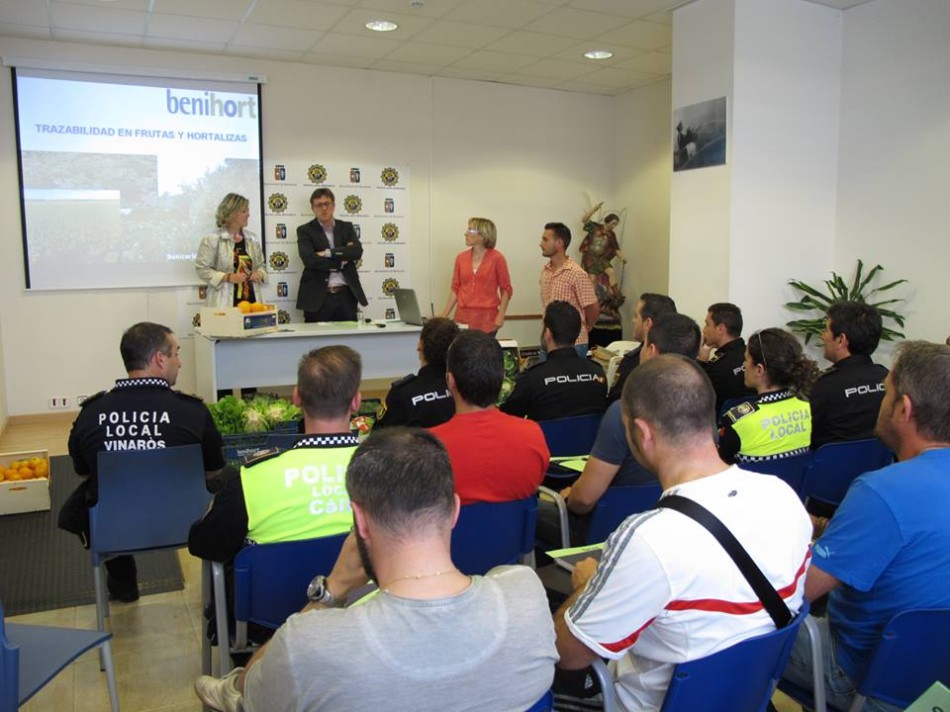 Los robos en el campo se han convertido en una prioridad para los cuerpos de seguridad que operan en nuestra comarca. Con el objetivo de actuar con mayor diligencia, 35 agentes de las Policías locales de Vinaròs, Benicarló, Peñíscola, Policía Autonómica y Guardia Civil han recibido instrucciones de los técnicos de la Cooperativa Agrícola Benihort que han explicado como operan sus socios con el objetivo de poder detectar con facilidad si una mercancia es lícita o no.