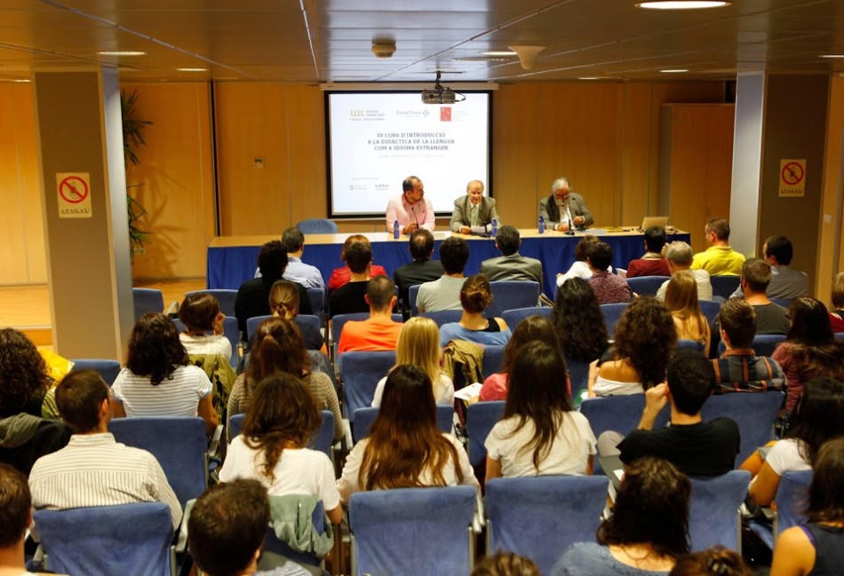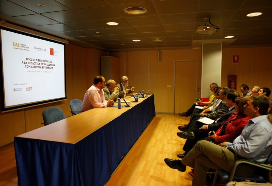 L’Institut Ramon Llull, l’Acadèmia Valenciana de la Llengua i la Xarxa Vives d’Universitats organitzen el IV Curs d’introducció a la didàctica de la llengua com a idioma estranger, que ha començat avui i es desenvolupa entre Vinaròs i Morella fins al proper diumenge 27 d’octubre. L’acte inaugural del curs ha tingut lloc aquest migdia a la Biblioteca Municipal de Vinaròs i ha comptat amb la participació del primer tinent d’alcalde i regidor de Cultura de l’Ajuntament de Vinaròs, Lluís Gandia; el director de la Fundació Ramon Llull, Vicenç Villatoro i el president de l’AVL, Ramon Ferrer.