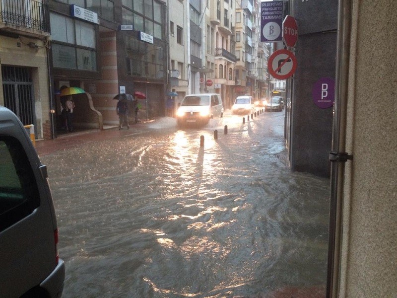 Las fuertes lluvias caídas en Vinaròs desde la pasada madrugada se han saldado, como incidente más destacado, con dos vehículos atrapados en el paso subterráneo de la Avenida María Auxiliadora, esta mañana. Hasta el lugar se han desplazado efectivos de la Polícia Local que han desalojado a los ocupantes y han cortado al tráfico la zona. Como prevención, también quedaba cortado al tráfico rodado la rotonda del puerto. Las tapas de alcantarillado de la Plaza España y Plaza Primero de Mayo quedaban levantadas, debido a la gran cantidad de agua caída en poco tiempo.