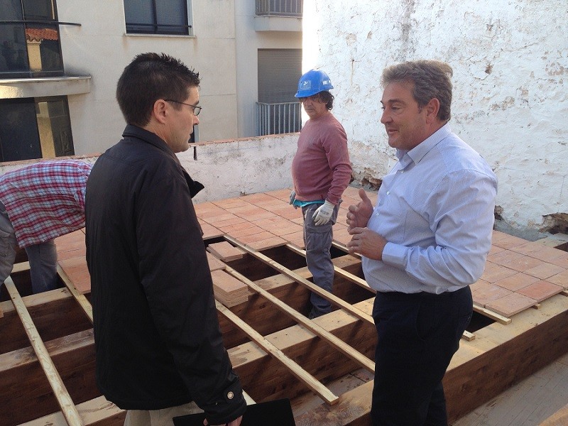 Juan Bautista Juan se ha interesado por los trabajos que se están llevando a cabo en la cubierta del edificio y que evitarán en un futuro goteras y humedades que perjudiquen al edificio civil más antiguo que se conserva en nuestra ciudad.