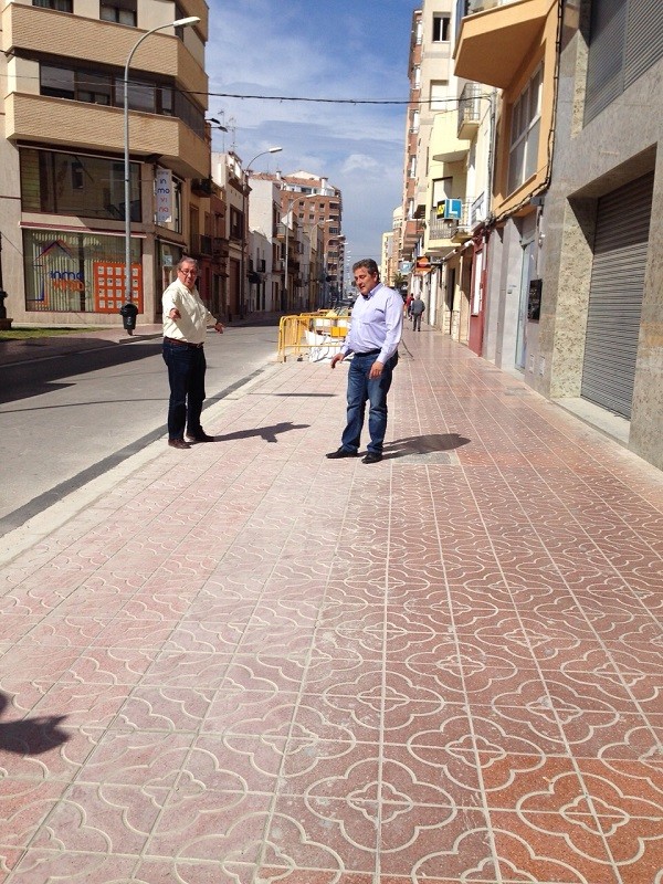 El Ayuntamiento de Vinaròs ha finalizado las obras de ampliación de la acera de la calle Puente con la que se ha logrado mejorar la seguridad de los viandantes y al mismo tiempo mejorar la accesibilidad de la misma. El Alcalde de Vinaròs, Juan Bautista Juan, junto con el concejal de Obras y Servicios, José Ramón Tárrega, han visitado la obra tras la que Juan ha manifestado “la satisfacción de poder ver mejorada una acera que era un peligro porque obligaba a los peatones a descender a la calzada, un hecho que a partir de ahora no será necesario”. El Alcalde también recordaba que “esta era una demanda antigua del colectivo con discapacidad porque debido a la estrechez de la acera no podían circular, situación que desde ahora hemos solucionado”.