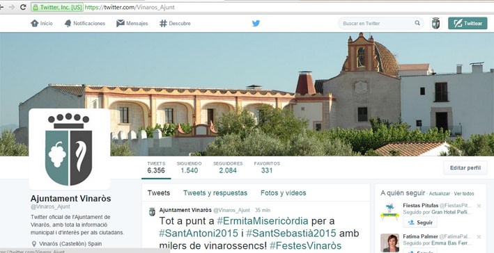 El Ayuntamiento de Vinaròs sigue contando con su presencia en las redes sociales, como un instrumento para generar información y transmitirla a la ciudadanía, de forma cercana y efectiva. En el último año, las cuentas del consistorio en Facebook y Twitter, creadas en enero de 2013, han aumentado notablemente en número de seguidores y se han convertido en un medio utilizado cada vez más, por parte de los usuarios, para reclamar información, plasmar sugerencias y difundir contenidos de interés. La cuenta Ajuntament de Vinaròs en Facebook supera los 3.900 seguidores mientras que la de Turisme Vinaròs ha alcanzado los 3.500 seguidores. En Twittter, la cuenta @Vinaros_Ajunt cuenta con 2.080 seguidores y @Turisme_Vinaròs  suma 1.535. Turisme Vinaròs cuenta también con presencia en Instagram, con 197 seguidores y 115 imágenes publicadas desde su creación en agosto de 2013.