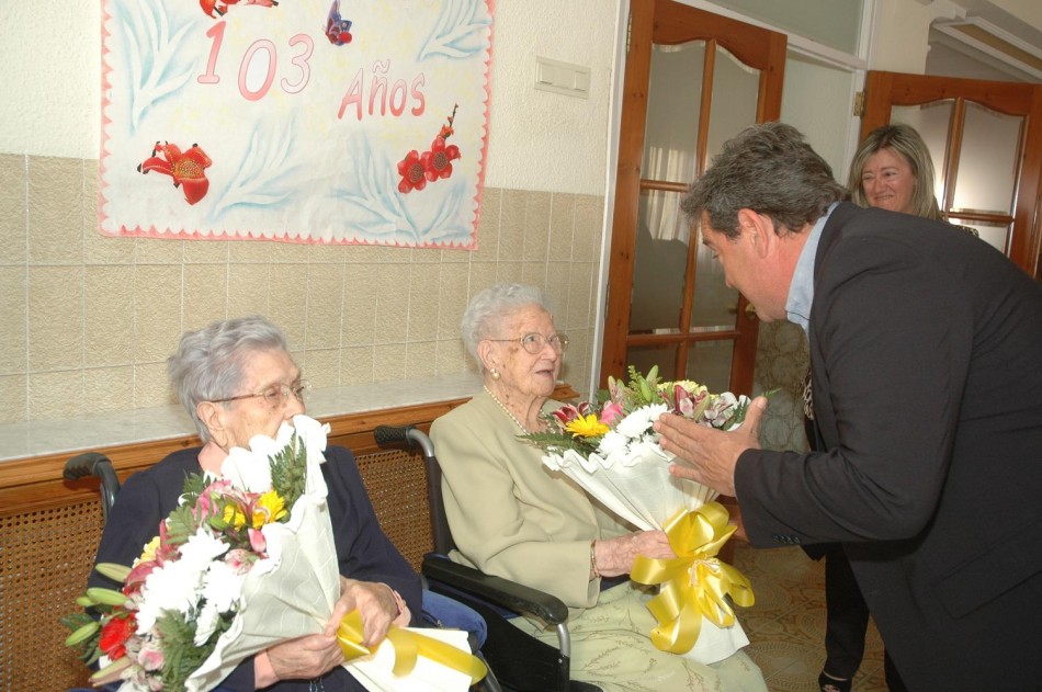 El Alcalde de Vinaròs, Juan Bautista Juan, acompañado de diversos ediles ha visitado la residencia de la tercera edad “San Sebastián” de Vinaròs para felicitar a Laura Puig Roda y Felicidad Fuster Bayarri que han cumplido 103 y 102 años respectivamente.