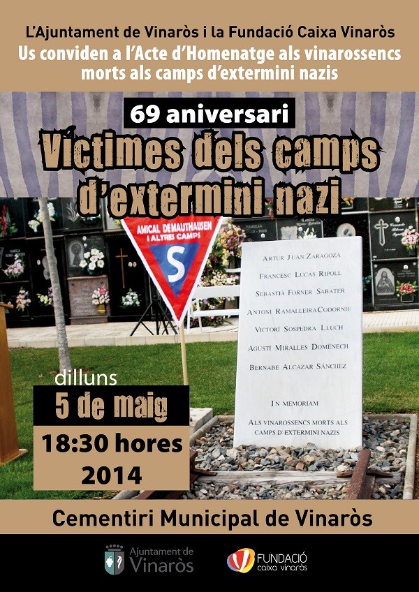 El Ayuntamiento de Vinaròs y la Fundació Caixa Vinaròs organizan un año más el acto de homenaje y recuerdo a las víctimas vinarocenses del exterminio nazi durante la II Guerra Mundial en un acto que se celebrará mañana lunes, 5 de mayo, a partir de las 18:30 horas en el cementerio municipal.