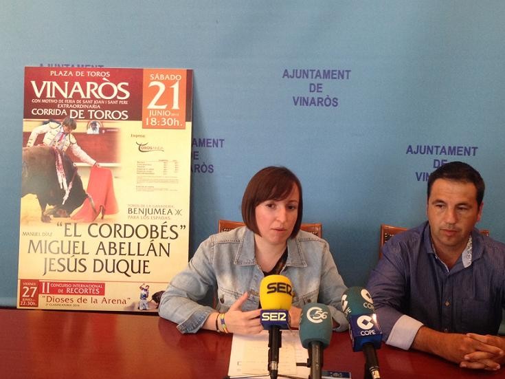 La concejala de Fiestas, Carla Miralles, ha sido la encargada de presentar el cartel junto con Jesús Domínguez, representante de la empresa Torosanda, encargada de gestionar la plaza de toros vinarocense durante la presente temporada.