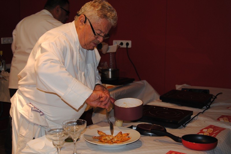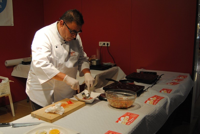El cocinero Salvador Alcaraz, del restaurante El Langostino de Oro, ha preparado una Ensalada Capricho de Mar, Langostinos Meridional y una Mousse de Turrón. Por su parte, Rafael Chaler, de Rafel Lo Cristalero ha explicado la preparación de un Steak Tartare y de un Helado de limón con gelatina de gin tonic. Los asistentes han podido ver la elaboración en directo de los platos, mientras los restauradores iban explicando y atendiendo las dudas que surgían. Al finalizar, podían degustar las recetas.