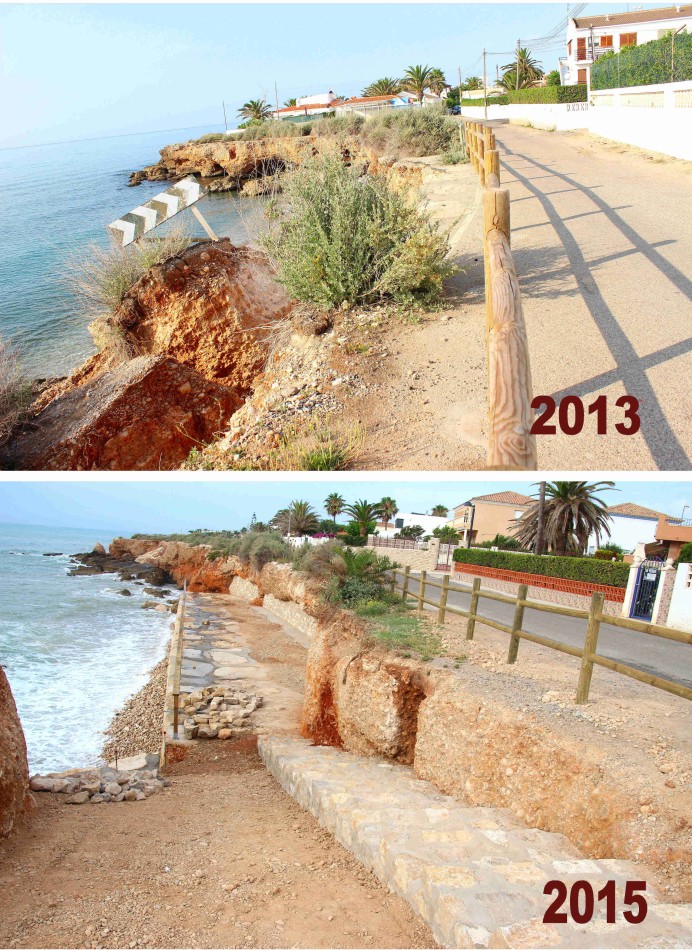 En la cala del Pastor y zona de la capilla de la Asunción se ha construido una pasarela de 220 metros que permitirá el paso entre las distintas calas, al tiempo que permite la protección de las viviendas ubicadas en la zona y que tal como se demuestra en las fotografÃas habÃan quedado en grave peligro tras los últimos  desprendimientos provocados por la erosión del mar.