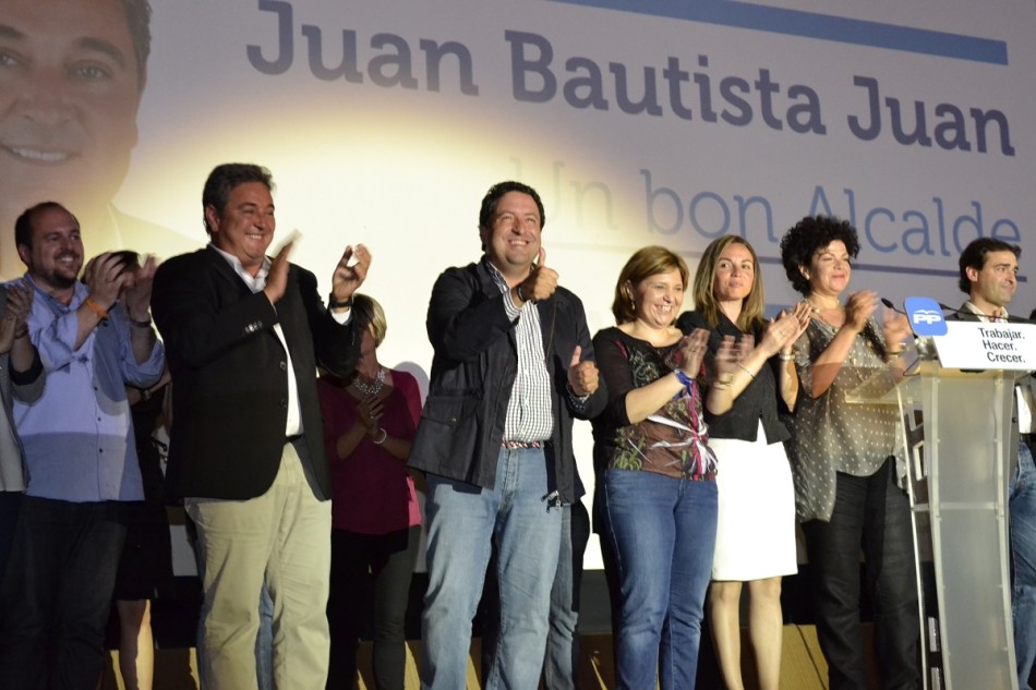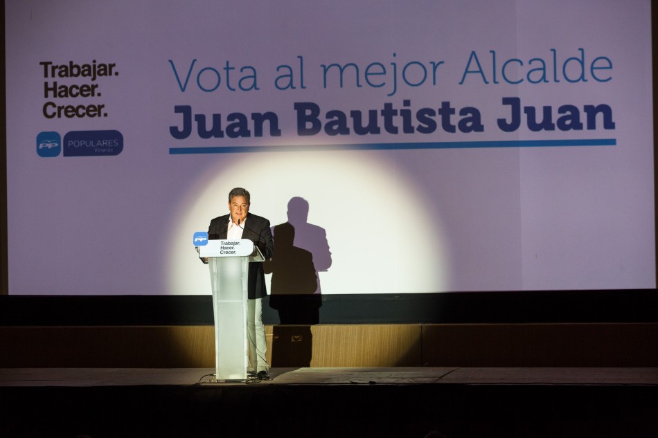 En su intervención, precedida de dos videos sobre los logros conseguidos y los proyectos de futuro para la próxima legislatura, Juan Bautista Juan ha destacado que “con la credibilidad de haber logrado rebajar la deuda de los 39 millones de euros que nos encontramos a 17 millones nosotros anunciamos que seguiremos bajando los impuestos y tasas municipales como hemos hecho esta legislatura”.