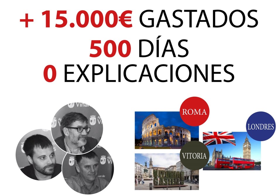 Los populares han recordado que “aquellos que prometían transparencia están demostrando que tienen auténtico pánico a la transparencia y por eso tratan de ocultar a los vinarocenses las facturas de sus viajes al extranjero sin ninguna justificación y que solamente entre Londres, Roma y Vitoria ascienden a más de 15.000 euros”.