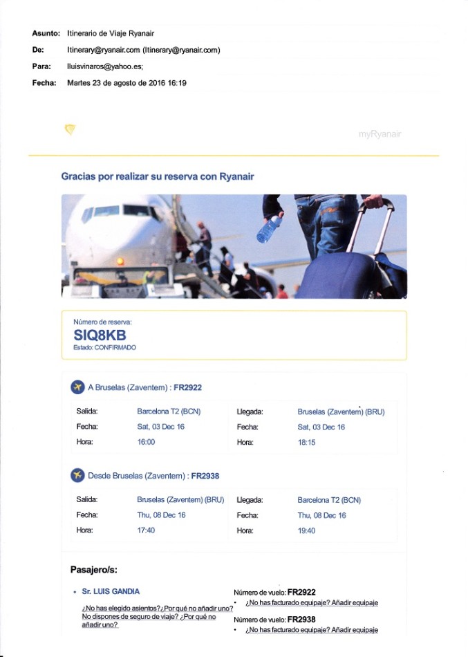 El portavoz adjunto ha retado a Enric Pla “a competir en transparencia y por ello no tengo inconveniente en mostrar los billetes de avión de Ryanair, pagados de mi bolsillo el 23 de agosto, fecha en la que desconocía la convocatoria del pleno del 7 de diciembre, para viajar a Bruselas con mi familia alojándonos en casa de una sobrina de mi mujer; ahora que Enric Pla explique, por ejemplo, porqué cobró del Ayuntamiento de Vinaròs una dieta por un viaje a las fiestas de Alcañíz cuando ese ayuntamiento se lo paga absolutamente todo”.