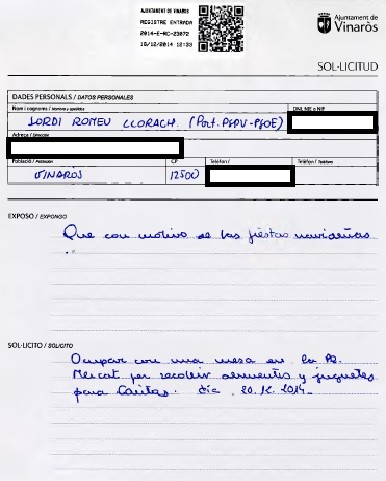 Gandía ha explicado que “tal y como demuestran los documentos que hacemos públicos, el 4 de diciembre se presentó por la Asociación Voley playa El Fortí de Vinaròs una solicitud para instalar un puesto de recogida de alimentos en la plaza del Mercado y la solicitud de los socialistas es del día 16, por lo que se ha autorizado a la asociación que lo solicitó en primer lugar y se ha propuesto una alternativa a quienes lo hicieron con posterioridad”.