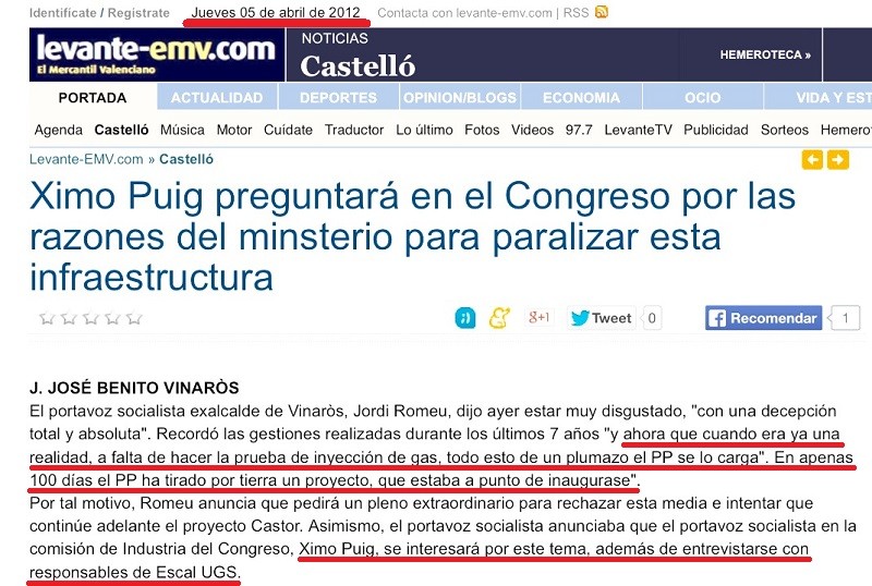 El portavoz del PP en el Ayuntamiento de Vinaròs ha concluido señalando que “el gobierno socialista aprobó una cláusula por la que funcionara o no el proyecto Castor la empresa cobraría el valor de lo invertido, el gobierno del PP denunció como abusiva ante el Supremo dicha cláusula pero el tribunal dio la razón a la empresa y por ese motivo ahora solamente se ha cumplido una resolución del Tribunal Supremo por lo que el recurso de inconstitucionalidad presentado por los socialistas es un recurso contra ellos mismos que son el alma mater del proyecto Castor”.