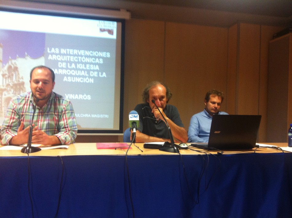 El salón de actos Providencia García de la Biblioteca municipal acogió ayer por la tarde una conferencia del arquitecto director de las obras de restauración de la Iglesia Arciprestal, Carles Boigues, y del responsable de restauración mueble de la fundación La Luz de las Imágenes, José Luis Navarro.