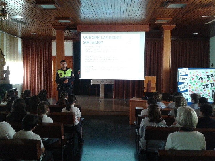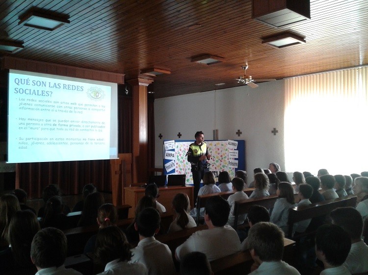 La Policía Local se desplazó hasta el centro escolar para concienciar a los alumnos de los peligros que contienen las redes sociales y también de las ventajas indiscutibles de las mismas si se cumplen una normas básicas de autoseguridad personal para evitar el mal uso de determinada información.