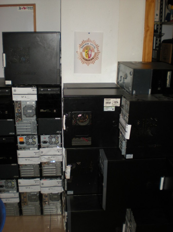 La Policía Local de Vinaròs y la Guardía Civil realizaron el pasado jueves una operación conjunta en la que participaron 13 agentes de la Policia Local y 5 miembros de la Guardia Civil y en la que se incautaron 30 ordenadores en cuatro establecimientos de la ciudad.