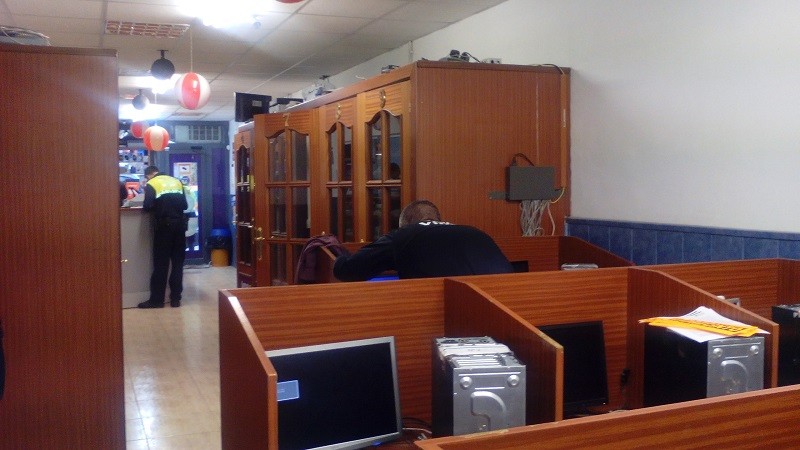 La operación se inició sobre las 16:30 horas y se prolongó hasta las 20 horas. En el locutorio-ciber de la calle San Francisco se intervinieron 19 equipos informáticos al carecer de las medidas mínimas de autenticidad respecto al sistema operativo. Además se formuló denuncia-acta por una presunta infracción por disponer el local de equipos informáticos de juego sin licencia y utilizados por menores.