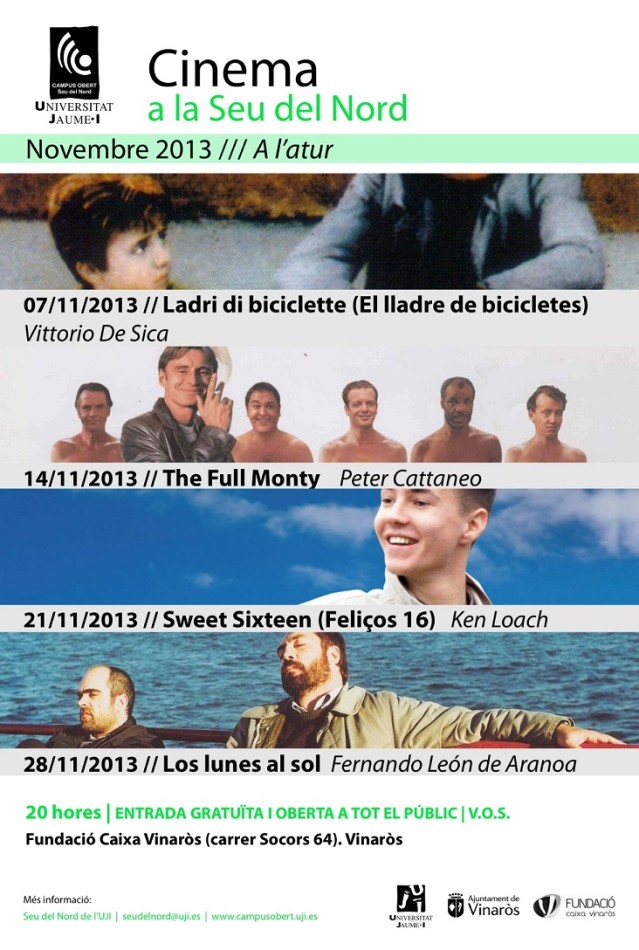 De la misma forma durante el mes de noviembre se ha programa un ciclo de cine bajo el común denominador del problema del paro y donde podrán verse películas como Los lunes al sol o Full Monty