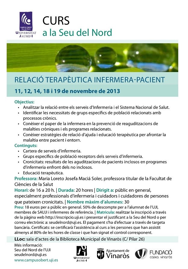 También se ha programado un curso sobre la relación terapeútica entre enfermero y paciente, en este caso con una duración de 20 horas y que se impartirá en la sala de actos “Providencia García” de la Biblioteca Municipal.