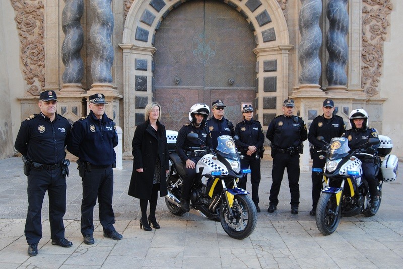La Policía Local de Vinaròs ha presentado dos nuevas incorporaciones a su parque móvil: dos motocicletas de 500 cc con las que los integrantes de la Unidad de Tráfico realizarán el control de tráfico en el casco urbano y entorno rural. La concejala de Gobernación, Mar Medina, ha recordado que "esta unidad se creó en junio de 2014 y cuenta con ocho componentes -dos oficiales y cuatro agentes- que desarrollan sus servicios en bicicleta, coche y ahora en estas dos motocicletas, en las que se han invertido 18.000 €". Medina insistía en la importancia "de la vigilancia que realizan en el entorno rural en la que hemos centrado nuestras próximas acciones".