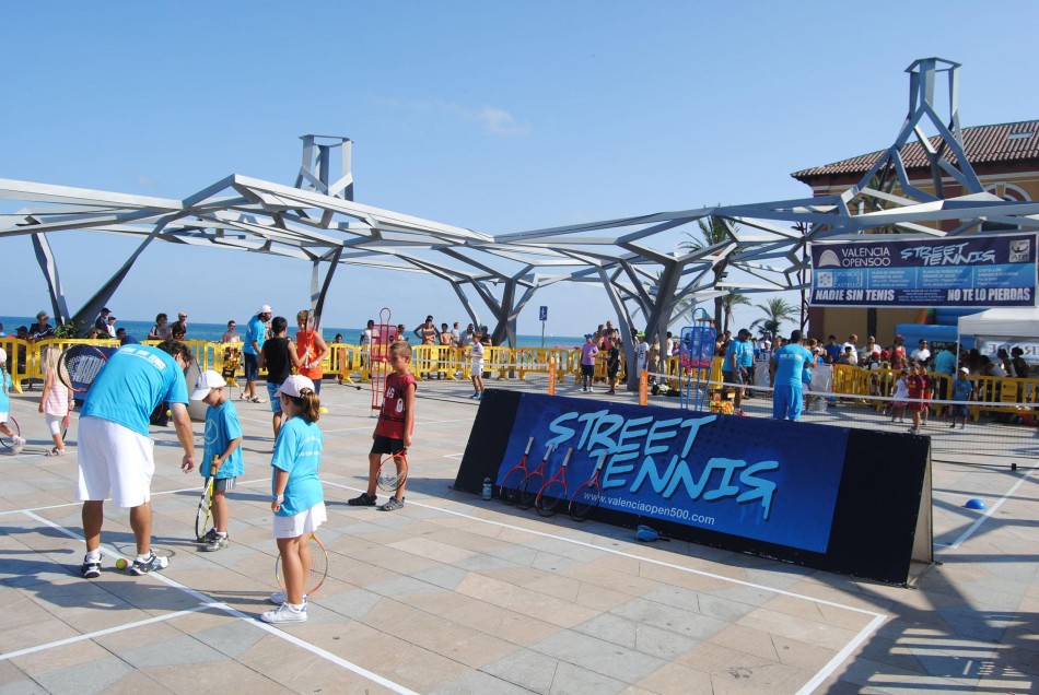 Más de 600 niños participaron ayer viernes en la sesión de Street Tennis organizada por el Valencia Open 500. Una iniciativa de carácter itinerante que, durante este verano, está acercando la práctica del tenis a los niños de la Comunitat Valenciana. El Paseo Colón fue el escenario elegido para albergar el gran dispositivo compuesto por seis pistas de minitenis, castillo hinchable e instalaciones complementarias. Instructores de tenis y monitores acompañaban a los participantes, guiándoles en distintos ejercicios de habilidad y manejo de la raqueta.