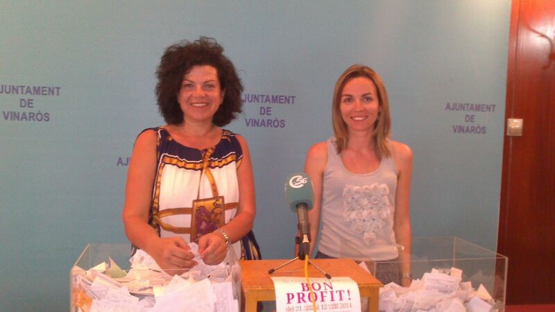 La edil de Comercio, Amparo Martínez, y de Turismo, Elísabet Fernández, han realizado hoy el segundo de los sorteos públicos previstos dentro de la campaña impulsada desde el Ayuntamiento de Vinaròs “Si compres aquí… bon profit” que premia las compras en los establecimientos adheridos a esta campaña con una comida o cena para dos personas dentro de las jornadas gastronómicas del langostino.