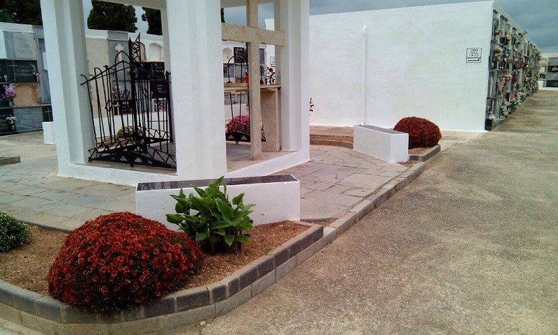 Todo está a punto ya en el cementerio municipal para acoger las tradicionales celebraciones de Todos los Santos, que suponen la visita de numerosos vecinos de la localidad, para honrar a sus difuntos. La Brigada de Obras y Servicios ha realizado diversas obras de acondicionamiento en las últimas semanas: se han adecentado pavimentos, limpiado y renovado las zonas ajardinadas y pintado muros y vallas. El concejal de Obras y Servicios, José Ramón Tárrega, explicaba que "siempre que llegan estas fechas, trabajamos para que el camposanto esté lo más vistoso posible".