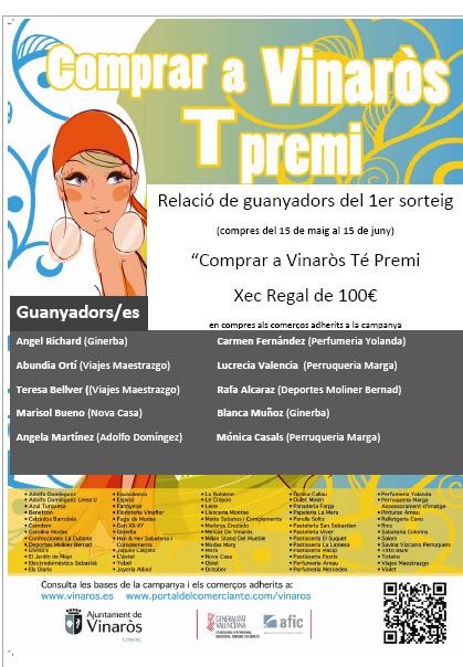 Ya se ha celebrado el primer sorteo de 10 cheques de 100 euros cada uno, dentro de la campaña “Comprar a Vinaròs té premi”, para compras realizadas en los comercios adheridos a la campaña, entre el 15 de mayo y el 15 de junio, por un valor superior a 20 euros.  El sorteo, se realizó bajo la presencia de notario y, tal y como recordaba la edil de Comercio,  Amparo Martínez, se realizará en tres ocasiones más:  para compras realizadas del 15 de septiembre al 15 de octubre; del 16 de octubre al 15 de noviembre y del 16 de noviembre al 15 de diciembre. En cada uno de los sorteos, se premiará a 10 clientes con un cheque por valor de 100 euros, a consumir en cualquiera de los comercios participantes en la iniciativa.