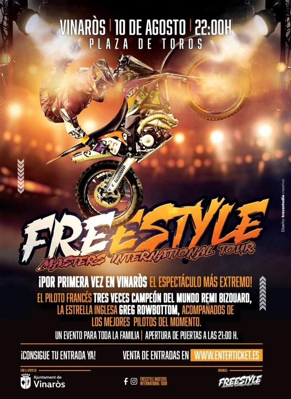 El freestyle motocròs és una variació del motocròs en el qual els pilots desafien les lleis de la gravetat amb salts i acrobàcies impossibles. Un esdeveniment per a tota la família i aficionats al món de les motos en el qual les acrobàcies per sobre dels 15 metres d'altura faran vibrar al públic assistent. Tot això combinat amb un espectacle de so i il·luminació de més de 15.000W, guiat per un dels speaker més importants i reconeguts a nivell nacional.