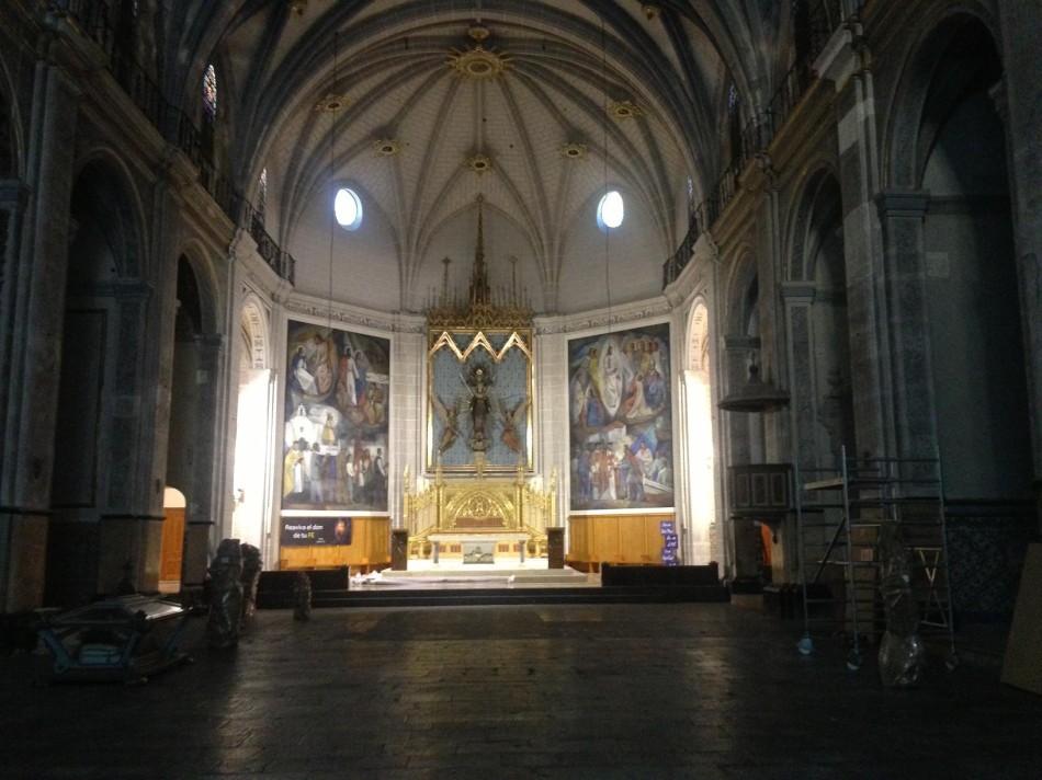 Esta actuación artística precede a la arquitectónica, cuyas obras de restauración serán adjudicadas próximamente, y pretenden la consolidación de la imagen exterior de la iglesia; la recuperación de la unidad en la nave central y la restauración del espacio del deambulatorio de cañones para habilitarlo a las visitas.