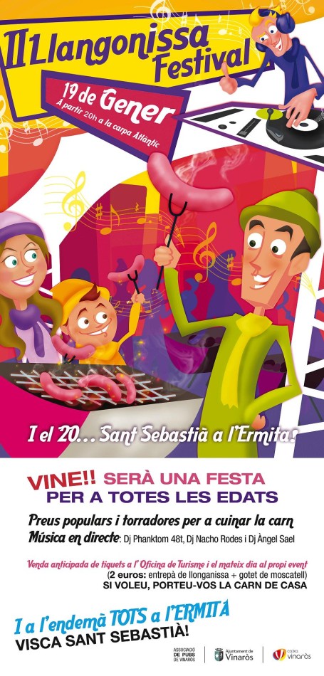Como previa a la celebración del día del patrón y dando continuidad a la iniciativa creada el año pasado, la víspera se celebrará el II Llangonissa Festival. El sábado 19 de enero, a partir de las 20.00 horas, la carpa del Atlántico acogerá esta fiesta en la que conocidos disc jockeys de la localidad intervendrán de forma continua. Además, se instalarán recipientes para asar la típica longaniza. Los tíckets podrán adquirirse, de forma anticipada, en la Tourist Info, a un precio de 2 euros e incluyen la longaniza, pan y un vaso de moscatel. También será posible adquirirlos in situ, en el momento de la consumición o incluso traerse la carne de casa. Esta fiesta se organiza con la colaboración de Caixa Vinaròs y la Asociación de Pubs y Discotecas de Vinaròs.