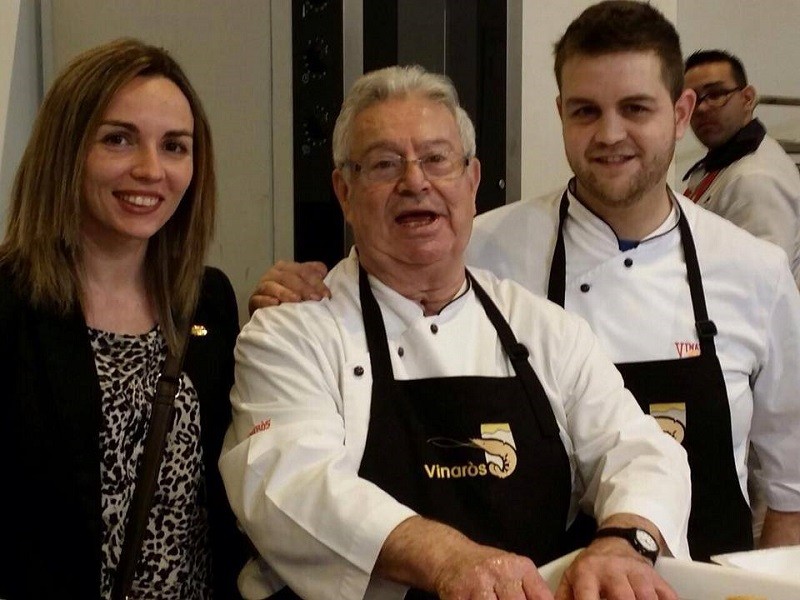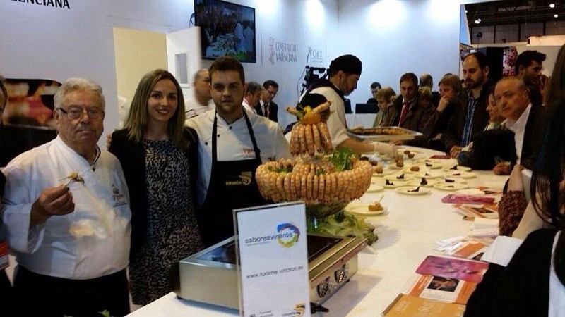 La gastronomía de Vinaròs ha vuelto a ser protagonista, un año más, en el espacio de la Comunitat Valenciana en Fitur, con la organización de un showcooking en el que, en esta ocasión, se ha apostado por cocinar y presentar el langostino de Vinaròs de forma innovadora. Los cocineros Salvador Alcaraz (Restaurante El Langostino de Oro) y Roberto Belmonte (Hostal Teruel) han preparado ante los asistentes un 'Almendrado de Langostino de Vinaròs', consistente en una farsa de croqueta a base de langostino y almendra acompañada de cebolla caramelizada y langostino de Vinaròs con rúcula. Se han repartido más de 150 raciones de esta plato, para cuya preparación se han empleado 14 kilos de langostinos de Vinaròs. La repercusión mediática conseguida ha sido inmediata, con la difusión del acto a través de las redes sociales institucionales y de bloggers gastronómicos y cobertura de medios de comunicación de carácter nacional y autonómico, como la TVE, la Cadena COPE y la Cadena SER.