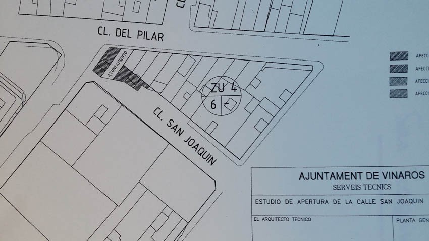 El Alcalde de Vinaròs y responsable del área de Urbanismo, Juan Bautista Juan, ha anunciado hoy el desbloqueo de la apertura de la calle San Joaquín, prevista ya en el PGOU del año 2001 y cuya gestión no ha podido resolverse hasta la actualidad. La actuación consiste en el derribo total de dos inmuebles y parcial, afectando solo a la parte trasera, de otros tres. De esta forma, se crea un espacio abierto en la confluencia entre las calles San Joaquín, Pilar y Asturias y supone la apertura completa de la calle San Joaquín hasta la calle San Francisco. El Alcalde la definía como "la posibilidad de reordenar el tráfico, creando un acceso directo al centro de la ciudad desde la Nacional 232 y evitando así el giro a la izquierda que debe hacerse ahora, desde la plaza San Esteban". Juan apuntaba la posibilidad de que "la calle Pilar pase a ser de sentido únido de subida hacia la Nacional 232, a la espera de una reordenación vial a realizar por parte de la Policía Local".