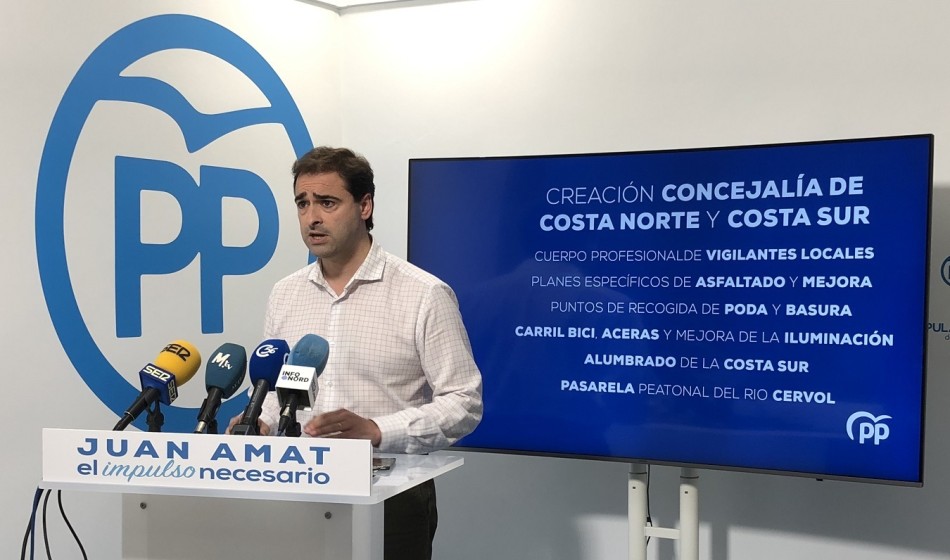 El candidato del Partido Popular al Ayuntamiento de Vinaròs, Juan Amat, ha anunciado hoy que en caso de gobernar “crearemos la concejalía de costa norte y costa sur para dar respuesta a problemas que vienen arrastrándose desde hace muchos años y a los que desde el Partido Popular estamos en disposición de comenzar a ponerle solución”.