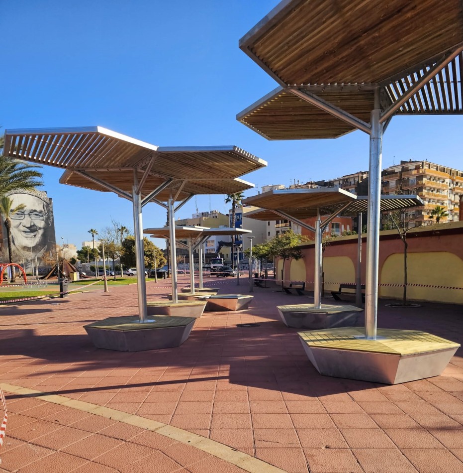 Durant aquesta setmana l'Ajuntament ha instal·lat pèrgoles en la plaça d'Espanya per a crear un espai més agradable que al mateix temps s'integri millor amb el municipi. Es tracta d'unes estructures que es decoraran amb jardineres, que sobretot oferiran ombra per a les persones que tots els dies porten als xiquets i xiquetes al parc infantil.